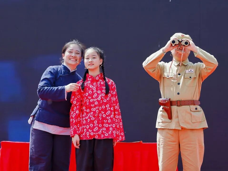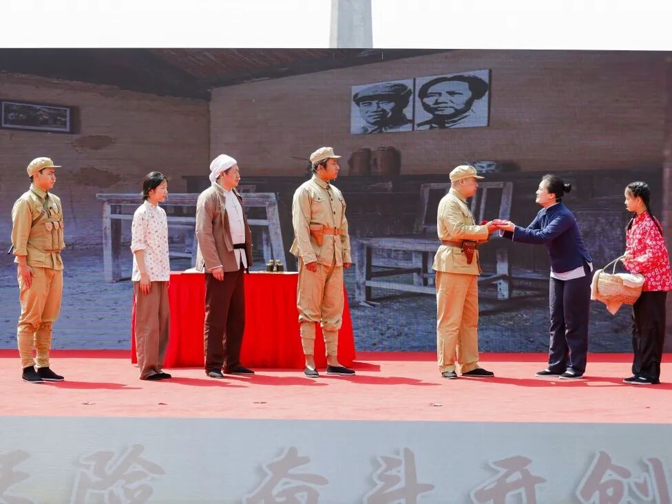 原创情景剧《我送亲人过大江》聚焦革命年代群众支援前线的真实故事,演员们真情演绎、感人至深,生动诠释了 “最后一粒米送去做军粮,最后一块布送去做军装” 的军民鱼水深情,让在场观众深刻感悟到人民战争的磅礴力量。