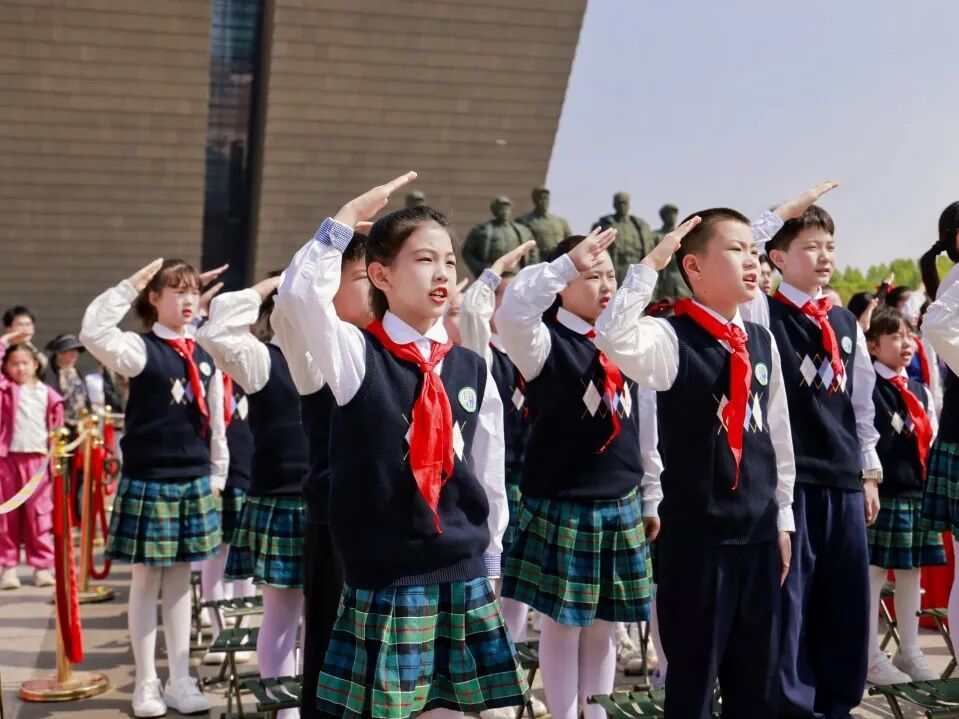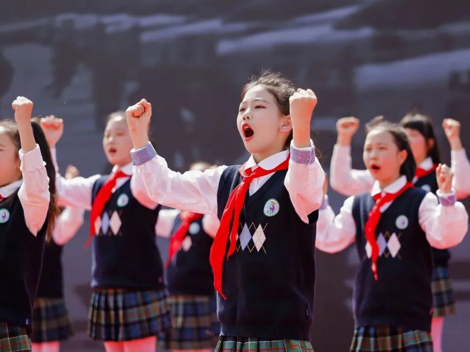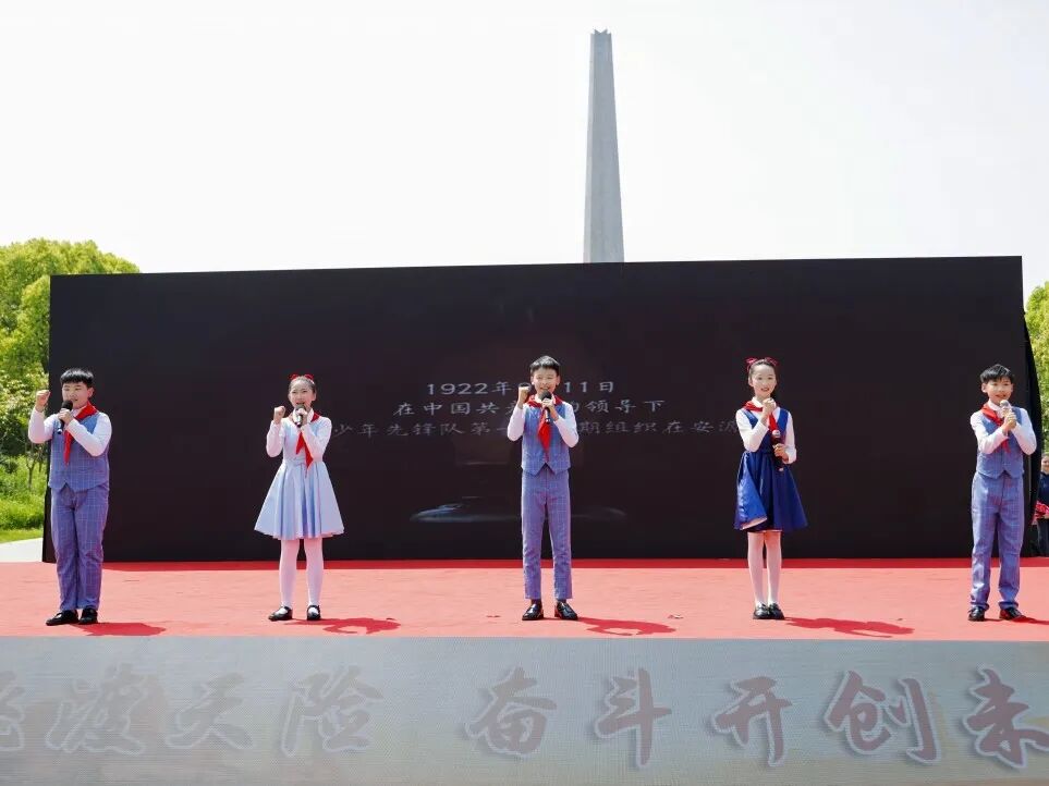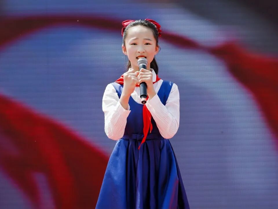 合肥市师范附属小学学生带来朗诵《时刻准备着》,少年们声音铿锵有力、目光坚定有神,展现出新时代青少年传承红色基因、立志报效祖国的责任与担当。