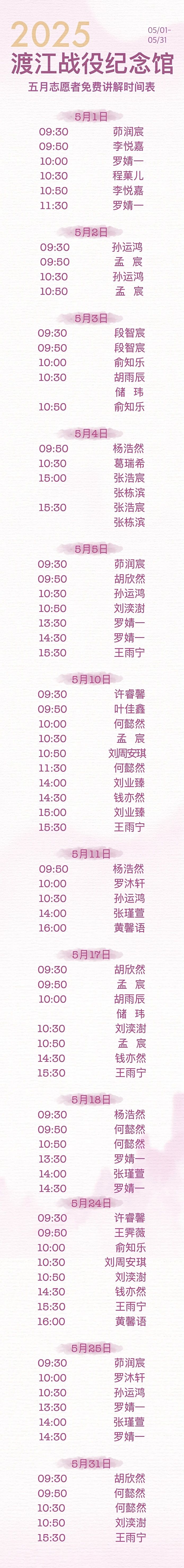 春游江淮 | 渡江战役纪念馆志愿者5月份免费讲解时间表(5/1-5/31)